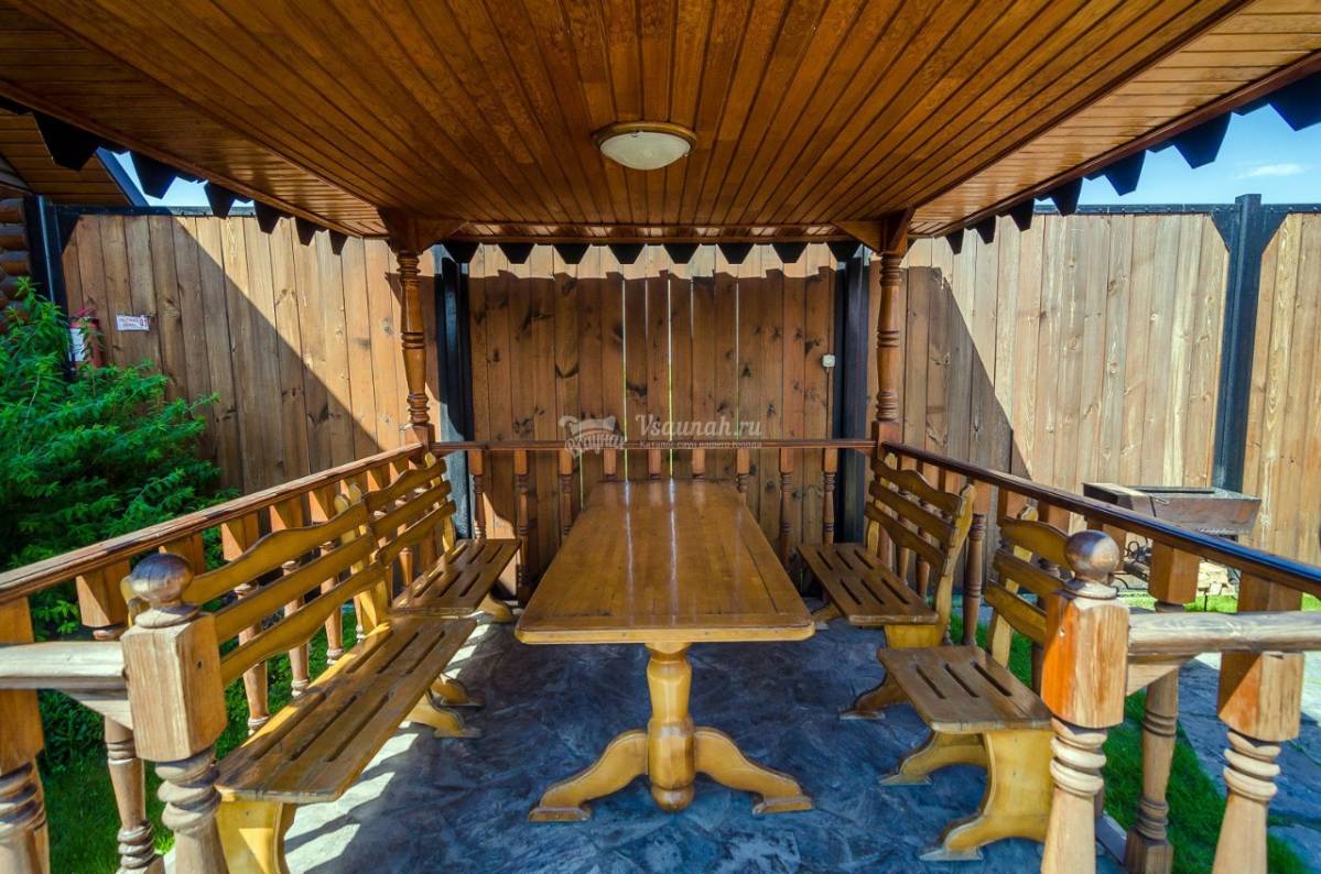 Русская баня на дровах, бассейн,беседка (летняя веранда), парковка, караоке,настольные игры,банные принадлежности, услуги парильщика